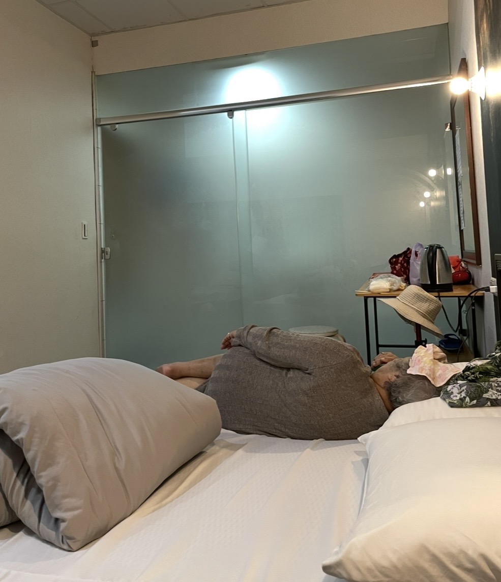 總算到了,看護暈在床上了