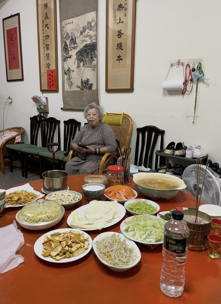 外婆在,不在寺用餐,疼孫啦!吃隔壁蒸餃